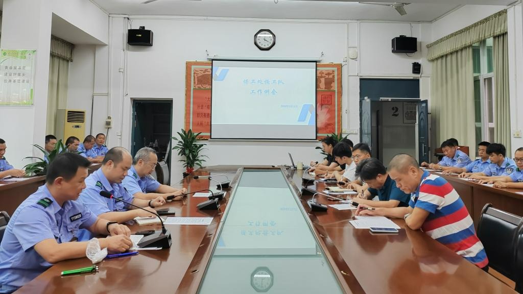 5月11日,保卫处在图书馆二楼会议室召开了校卫队工作例会,处长杨文沛、副处长黄海波出席会议,治安科、综合科、校卫队全体成员参加会议,治安科黄飞扬同志主持会议。