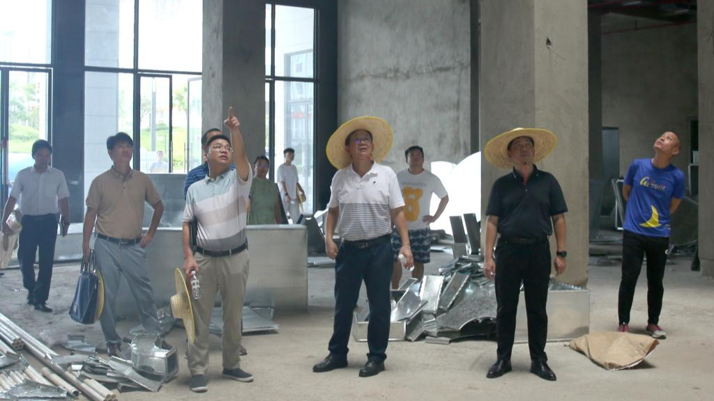 李雪斌在检查图书馆项目的室内装修等情况。