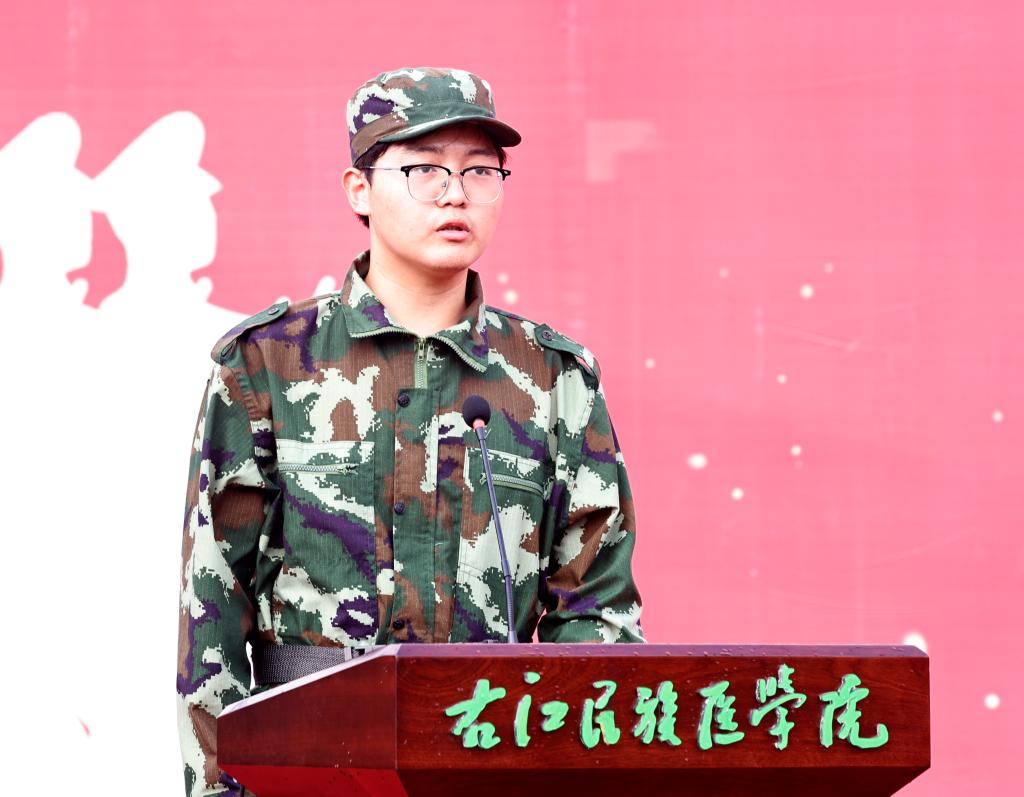 医学影像学院2024级医学影像学专业2班的高卿作为学生代表发言,他表示,时间如斯,转眼军训已到尾声,在教官的严谨及悉心指导下,我们往日的焦虑与恐惧化作了一道道身着戎装、蓄势待发、昂首阔步的身影,是它让我们学会了坚韧不拔,无论遇到多大的困难,都要坚持下去,决不退缩。