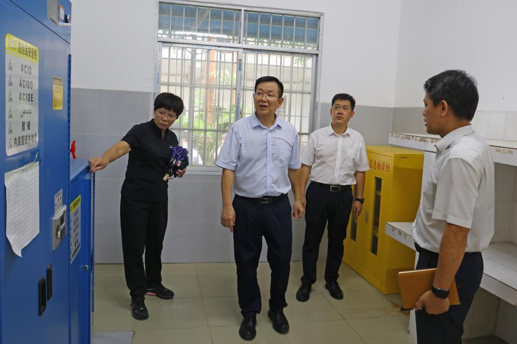 8月28日,校党委书记李雪斌率队开展2025年秋季学期开学前校园安全大检查暨消防安全检查,督导校园爱国卫生运动。校党委副书记、校长黄龙坚,党委副书记赵丽娟陪同检查。
