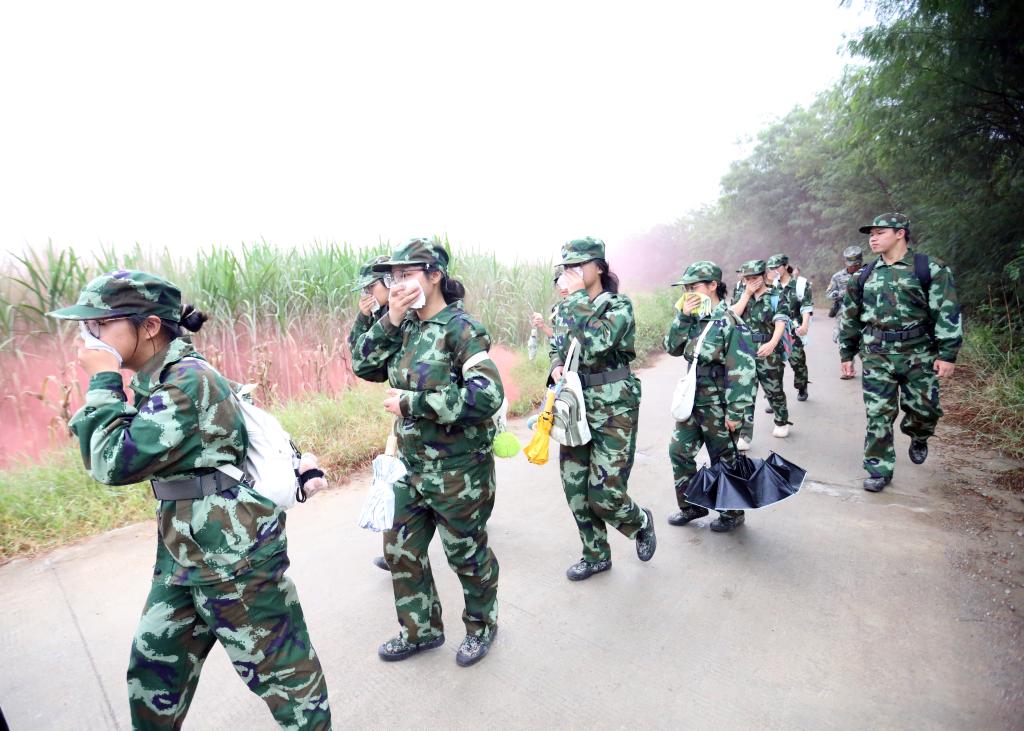 拉练的队伍如绿色长龙,游走在山间村庄中。拉练的队伍沿着提前规划好的路线有序前进。本次拉练行程约八公里,途中加入了防空训练、行军隐蔽、穿过烟雾弹等项目,旨在通过寻觅长征路,体会革命先辈在抗战中的艰苦不易。激发同学们的爱国之情,使之珍惜当下,牢记使命。