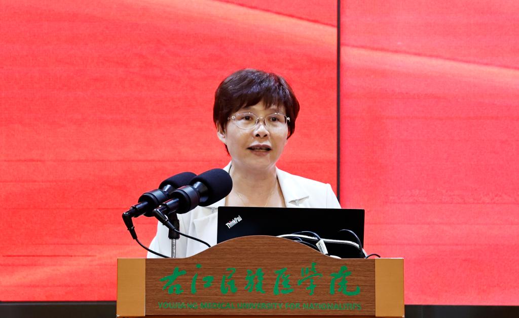 赵丽娟副书记就2023年度征兵工作进行总结,对去年在广西区内应征入伍的应届毕业生和在征兵工作中做出积极贡献的二级学院给予肯定,感谢他们无私奉献。