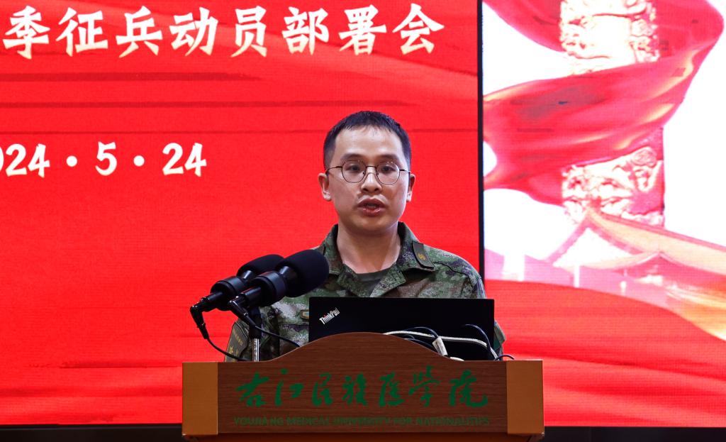 右江区人民武装部参谋邹维雄和学校保卫处综合科科长王强对秋季征兵政策和我校入伍优待政策进行了解读。动员同学们心怀“国之大者”,积极响应祖国召唤,自觉接受祖国挑选,立志军营建功立业,为巩固国防和强国建设做出自己的贡献!